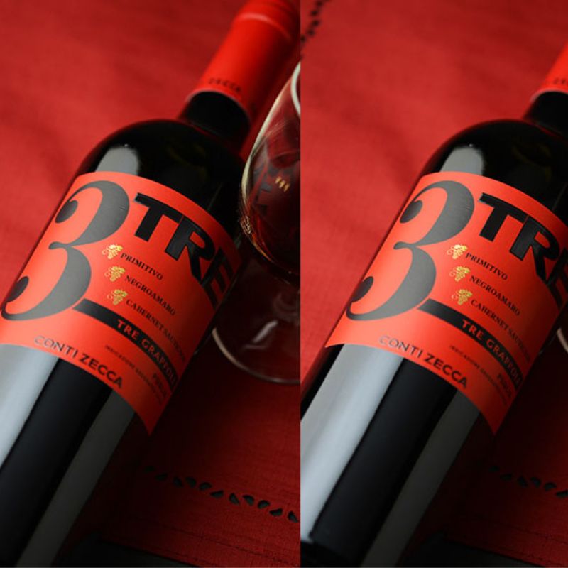 Với sự kết hợp mới lạ từ ba giống nho trứ danh Cabernet Sauvignon, Primitivo và Negroamaro, nhà sản xuất Conti Zecca đã tạo nên chai vang Conti Zecca Tre Grappoli chứa đầy hương vị trái cây chín kèm theo chút hương gia vị cay nhẹ ngay khi bật nắp. Sở hữu riêng mình một màu hồng lựu ruby vô cùng đẹp mắt, chai rượu thu hút ánh nhìn của người thưởng thức ngay khi rót ra ly những giọt đầu tiên.